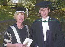 ![]() The Vice-Chancellor of UNE, Professor Ingrid Moses presenting Robert Valler with his award young teacher who brought music to Lightning Ridge is the winner of the University of New England's Young Distinguished Alumni Award which was presented at the University's Spring Graduation ceremony on Saturday, October 13. Robert Valler trained a choir from Lightning Ridge Central School that was the focus of world attention during its performance of the Australian National Anthem at the flag-raising ceremony for the Sydney 2000 Olympics. Robert became Lightning Ridge's first full-time school music teacher in 1999, after completing his study at UNE for a Bachelor of Music degree in 1997 and a Graduate Diploma in Education in 1998. He chose the Moree district for his first appointment, and was then appointed to Lightning Ridge Central School.Only a few months after his arrival there, the school discovered it had been chosen to sing for the raising of the Australian flag at the Australian Olympic welcoming ceremony. For the next year and a half, Robert not only prepared the school's singers, but also worked closely with both the International and Sydney Olympic Committees. "I wanted to go to Lightning Ridge because the town was crying out for a music program," he said. In less than three years he has enabled Lightning Ridge to be proud of its musical achievements. These include involvement in the Sing 2000 Festival and the Sing 2001 Choir in Sydney, the Central Schools' Band tour of northern NSW in August, a Sydney Opera House concert series in September, and the School Spectacular at Darling Harbour Convention Centre next month. Despite the school's lack of a music program until his arrival in 1999, Robert has repared a preliminary music class for next year's HSC. During his address at the Graduation ceremony, he said: "The most rewarding part of working in remote communities is that you change lives forever."The Vice-Chancellor of UNE, Professor Ingrid Moses, who presented him with the award on Saturday, said: "Robert is an outstanding example of our graduates' ability to contribute to many aspects of community life. He has opened new doors for many young people in a remote NSW community. "There are challenges out there in western NSW for teachers,' he said, "but it isn't as bad as people make out. Lightning Ridge is a great community, and the school is brilliant." One of the challenges is distance, and the whole town has supported Robert in helping the school's musicians travel to Sydney and elsewhere to perform."There have been many people, including those in the opal industry, in Lightning Ridge who have been particularly generous with their support," he said. "And when we were going to the Olympics, many anonymous donations arrived." In return, the school students provide music for a variety of community events, such as Senior Citizens' Day.Robert's service to the Lightning Ridge community has included presidency of the town's Rotary Club, during which he was the youngest Rotary president in NSW. He has also been appointed to the Northern NSW Creative Arts Council and is now a State coordinator for that organisation. |