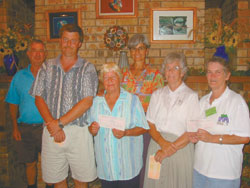 This willing band of volunteers each week conduct Sunday raffles for Lightning Ridge Hotel Motel patrons. At the close of 2001 they presented a staggering $12,500 to local charities: $10,000 UHA; $750 Cadets; $750 OPAL FM; Historical Society $750 and $250 Sister Anne. This has been a repeat effort for the trio who this year have been nominated in the Citizens of the Year category of the Australia Day Awards hosted by Lightning Ridge. They are a true example of the spirit of volunteers who seek little recognition for their continued efforts. |