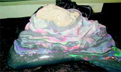 The Opal Muster 2002 proved to be a great success this year. It is estimated that approximately 1200 people attended the four-day event. International, national and local visitors, flocked to see the showpiece of the Opal Jewellery Design Awards Association’s (OJDAA) 2002 Opal Trade Show - one of the largest known black opals in the world.